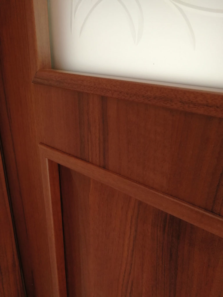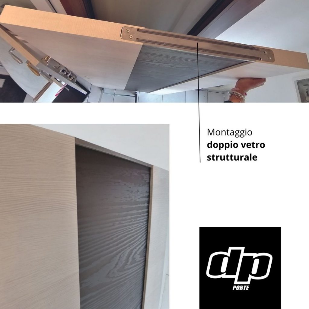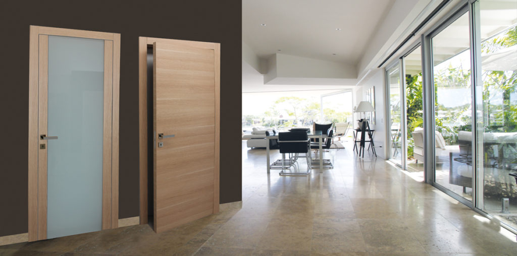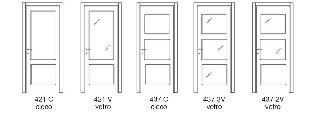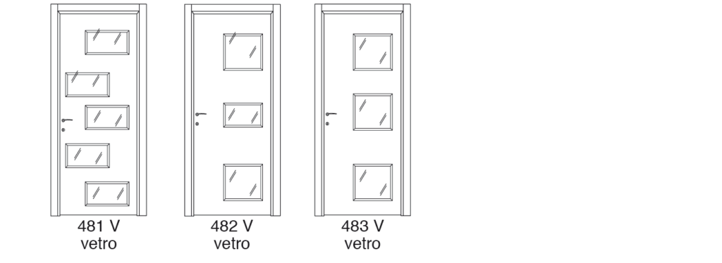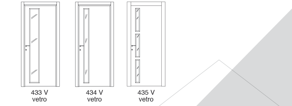 Per una soluzione semplice e minimalista, nei Mod. 441V – 442V – 448V – la porta viene assemblata con due vetri portanti che rimangono a filo anta sia dal lato interno che esterno.