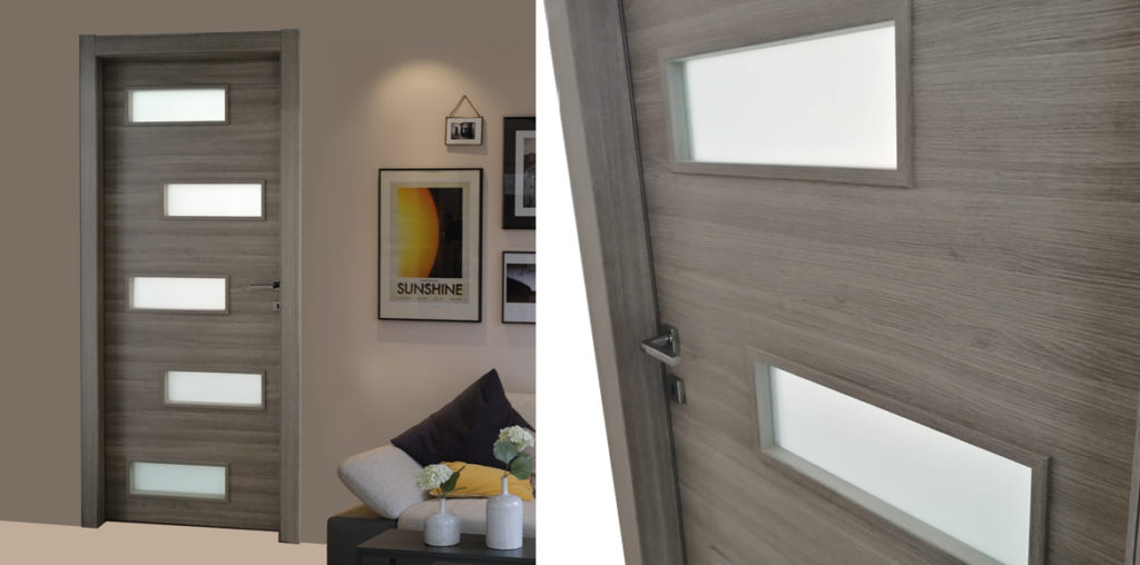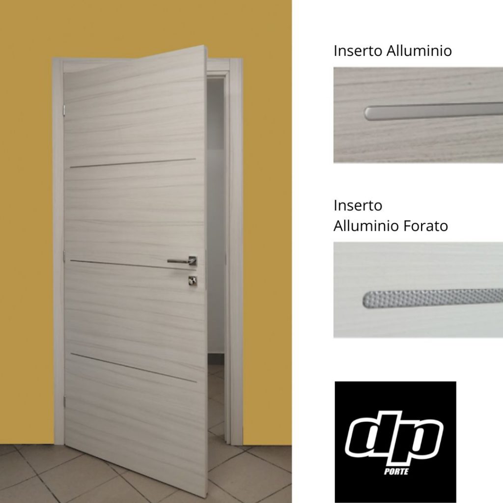 E’ possibile personalizzare le porte con inserti a filo pannello in alluminio liscio o forato